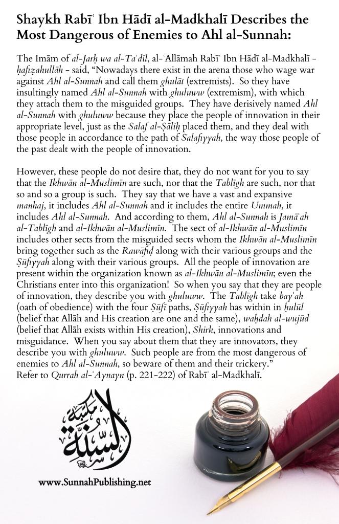 Shaykh Rabī Ibn Hādī al-Madkhalī Describes the Most Dangerous of Enemies to Ahl al-Sunnah: